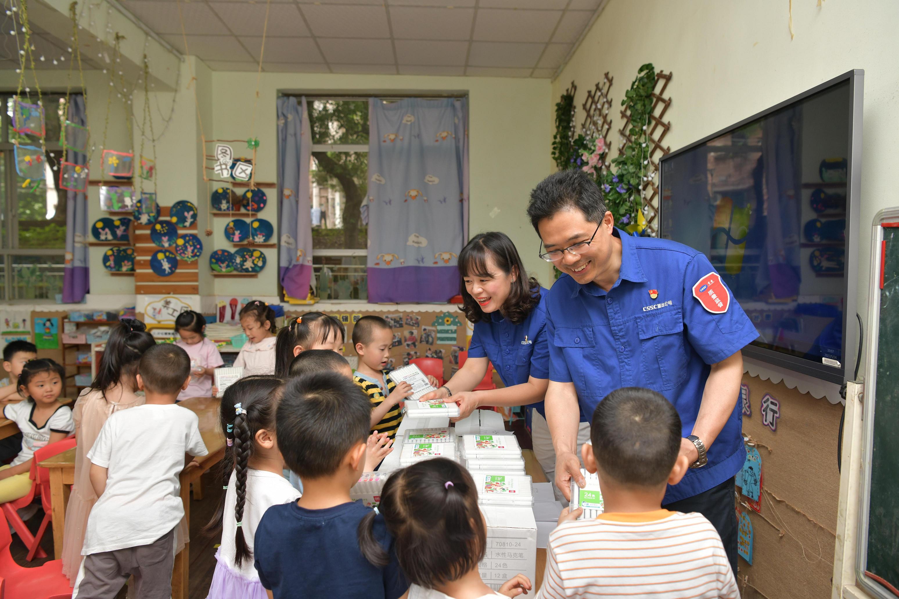 带着祝福,带着关爱,带着温暖,在“六一”国际儿童节到来之际,中国船舶乐鱼平台公司组织青年志愿者装扮成“冰墩墩”和“雪容融”迎接乐鱼平台公司幼儿园的小朋友们入园,并为他们送上节日的礼物。