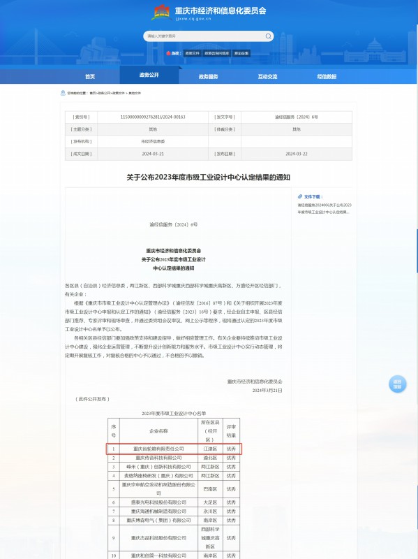 公司工业设计中心始终坚持以重大技术问题为导向,以“立足重庆,国内一流”为总体建设任务,始终坚持探索“四新”,坚持研发拥有自主知识产权、技术水平高、应用前景广的新成果,为企业高质量发展注入新的动力,为行业培育新的技术方向,为重庆工业经济发展做出新的贡献。